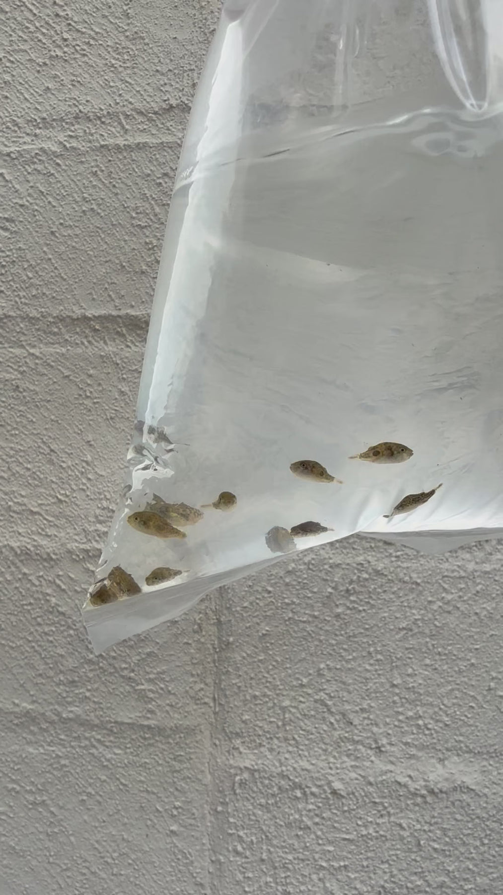 Open the bag containing the aquatic animals and carefully pour the entire contents into the bucket, including the water from the transport bag.