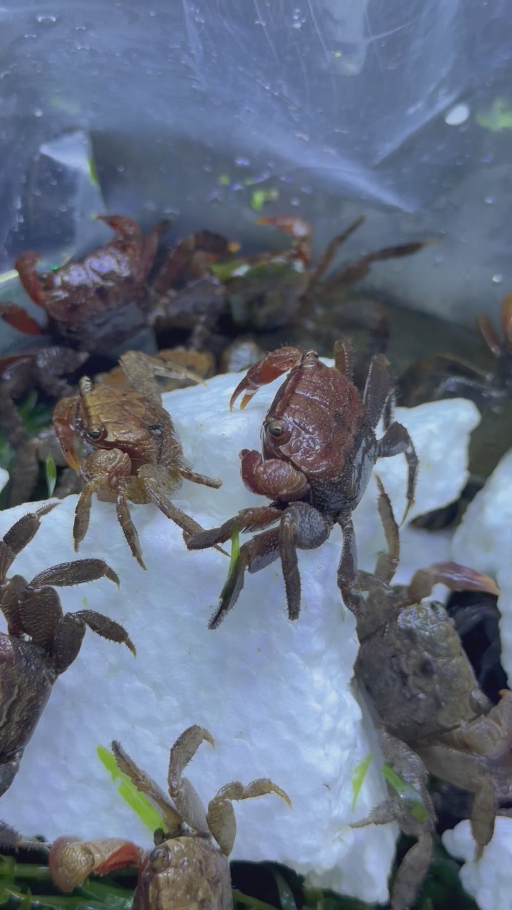 Clean, well-maintained water is essential. Freshwater crabs do not tolerate ammonia, nitrite, or copper.